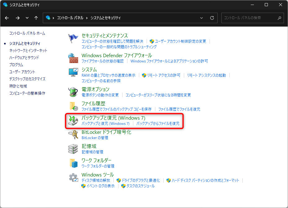 そのため、Windowsの機能に依存してバックアップするのは、将来的に利用できなくなる可能性がある。
