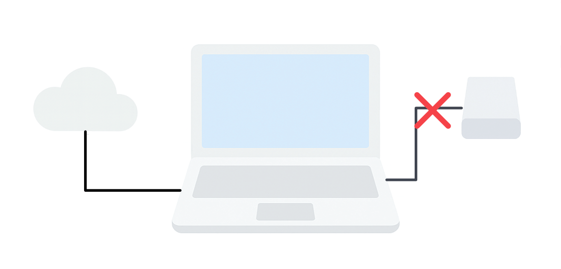 デメリットを考えると、外部ストレージ(HDDやSSD)へのバックアップは必要。