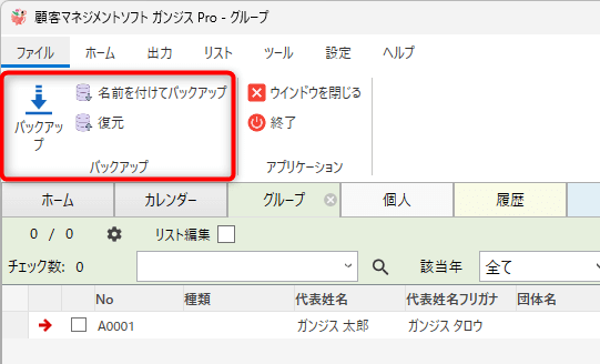 ガンジス顧客のメニューから、バックアップ・復元を行うには、