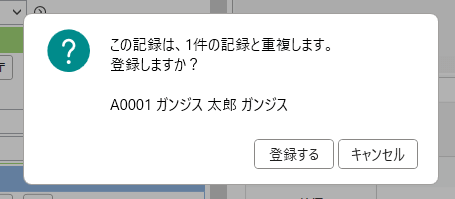 重複する記録がある時は、保存する時に、確認ダイアログが表示されます。