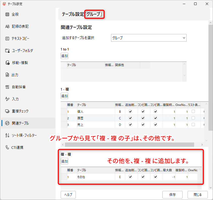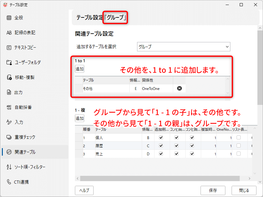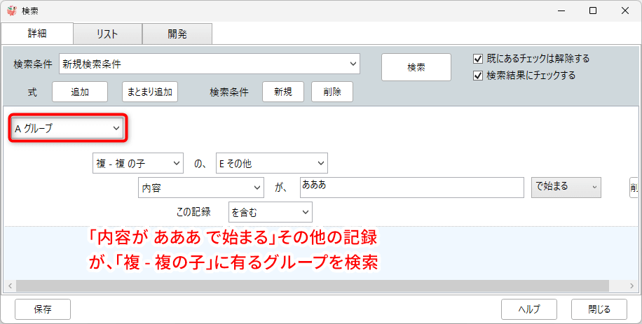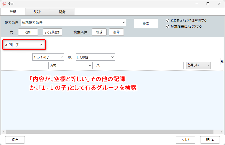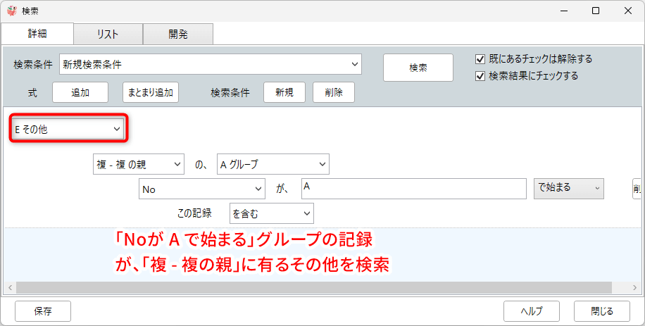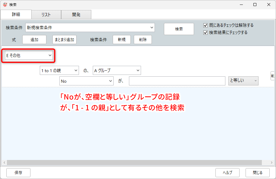 「1-1 の子」「1-1 の親」を式に利用した検索例