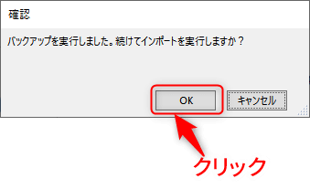 バックアップ後、確認画面が表示され、続けてインポートを実行します。