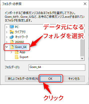 - データ元になる、フォルダを指定して下さい。