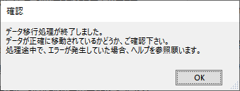 - データ移行が実行されます。途中、エラーが発生した場合は、その旨表示されます。