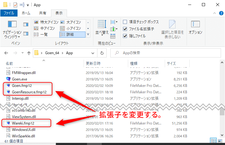 こうすると、Goen.fmp12をFileMaker Proで開いてご縁帳を利用できます。